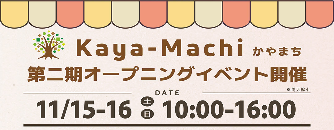 2025年11月15日(土)にKaya-Machi隣接高架下&かやまち広場で開催される「かやまちマルシェ(拡大版)」が開催され、直営ネットショップirashiikurashi(アイラシイクラシ)は11月15日(土)に出店させていただきます。